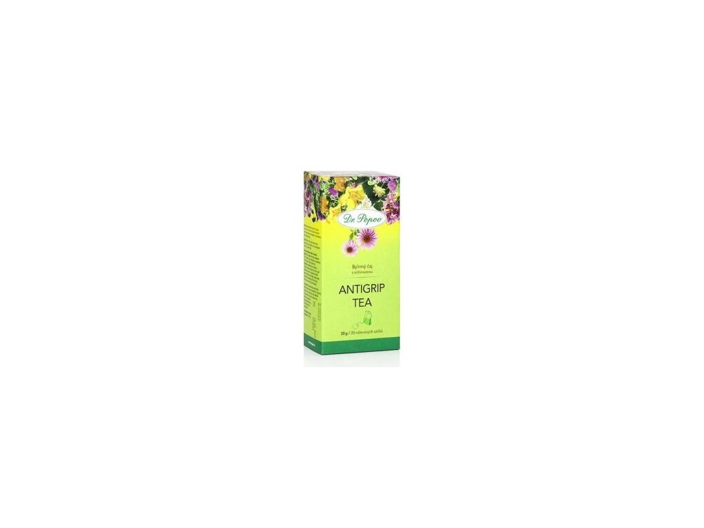 Kedy piť bylinný čaj Antigrip tea:Bylinný čaj Dr. Popova Antigrip tea podporuje správne fungovanie dýchacích ciest a to vďaka obsahu lipy a bazy čiernej. Zároveň pomáha posilňovať prirodzenú obranyschopnosť, pretože obsahuje echinaceu (trapatku). Čaj preto odporúčame piť v období, keď hrozí znížená imunita (napr. pri virózach).