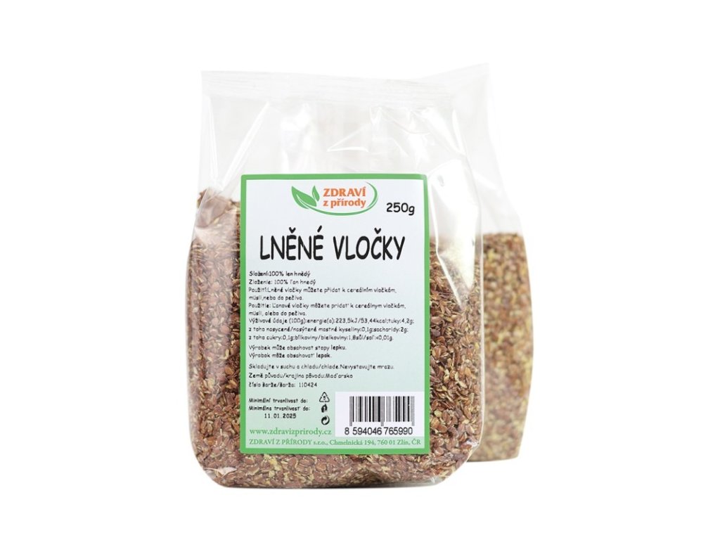Ľanové vločky sú vyrobené zo zrniečok hnedého ľanu a sú veľmi praktickým pomocníkom v kuchyni, kde uľahčia prípravu bežných jedál. Sú ľahko stráviteľnou potravinou určenou na zahusťovanie jedál a pokrmov, je možné ich pridať do kaší, polievok a nákypov alebo ich možno využiť pri príprave domáceho pečiva.Ľan je bohatým zdrojom mastných nenasýtených kyselín, patrí medzi najvýznamnejší zdroj mastných kyselín omega 3 a omega 6. Obsahuje vlákninu, bielkoviny, aminokyseliny, enzýmy, karotén, provitamín A, vitamíny rady B, vitamín E, vápnik, horčík, mangán, žen. Má orieškovú chuť, jemnú vôňu a je plnohodnotným zdrojom vlákniny a lignanov. Podobne ako chia semienka na seba viaže veľké množstvo vody, čím zväčšuje svoj objem a premení sa na ľahšie stráviteľnú „kašu“, ktorá telo na dlhšiu dobu zasýti.