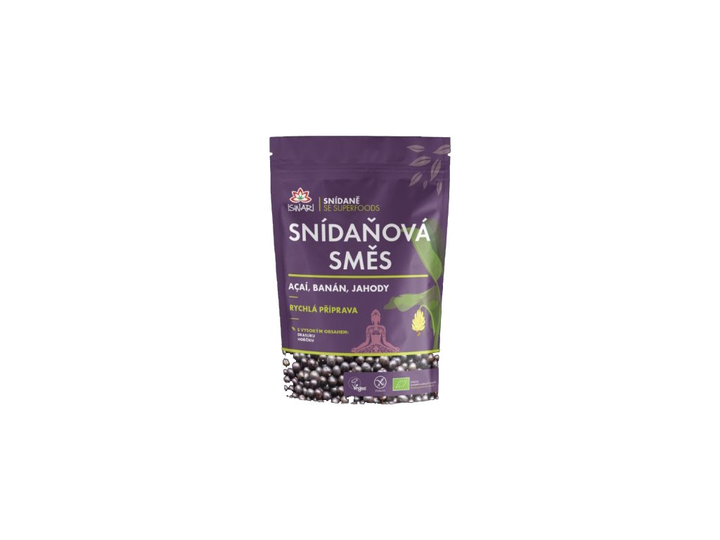 b>Zloženie:bio mletá pohánka, bio mletý ľan, bio mletá chia (Salvia hispanica), bio mleté ??mandle, bio semienka pohánky, bio banánový prášok (8 %), bio kokosový cukor, bio acaí prášok sušený mrazom (4 %), bio jahodový prášok ( 2 %)