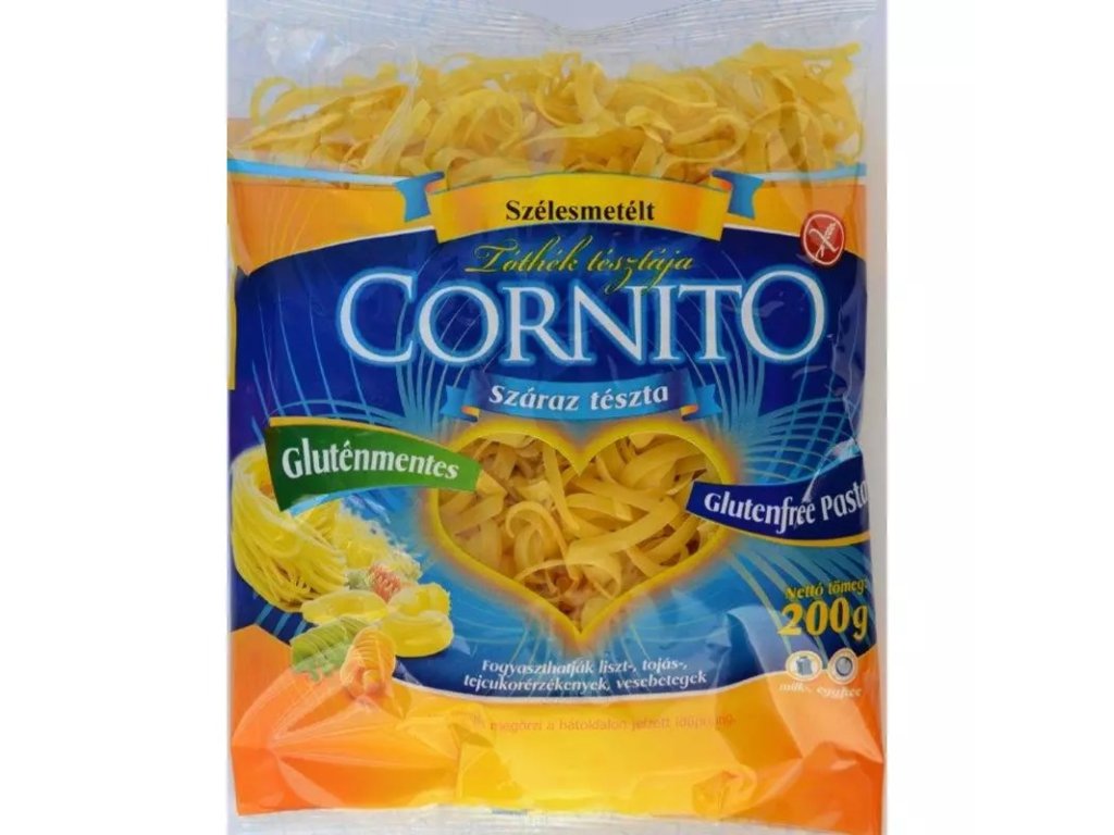 Vynikajúca kvalita suchých cestovín Cornito je spôsobená receptúrou a vynikajúcimi talianskymi strojmi. Chuť cestovín je blízka chuti tvrdých cestovín, takže sú príjemné, ich farba je vďaka kukuričnej prísade krásna žltá a aj po uvarení si vynikajúco zachovávajú svoju textúru.Zloženie: