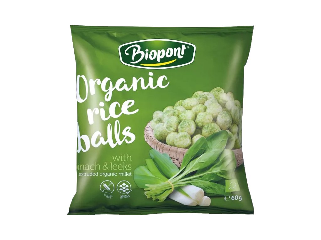 Guľôčky z hnedej ryže Akcia exsp. 10.2.2026 špenát pór bezgluténové BIO 60g