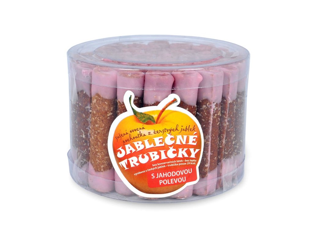 Dóza trubičky ovocné jablko polomáčané s jahodovým jogurtom 540g