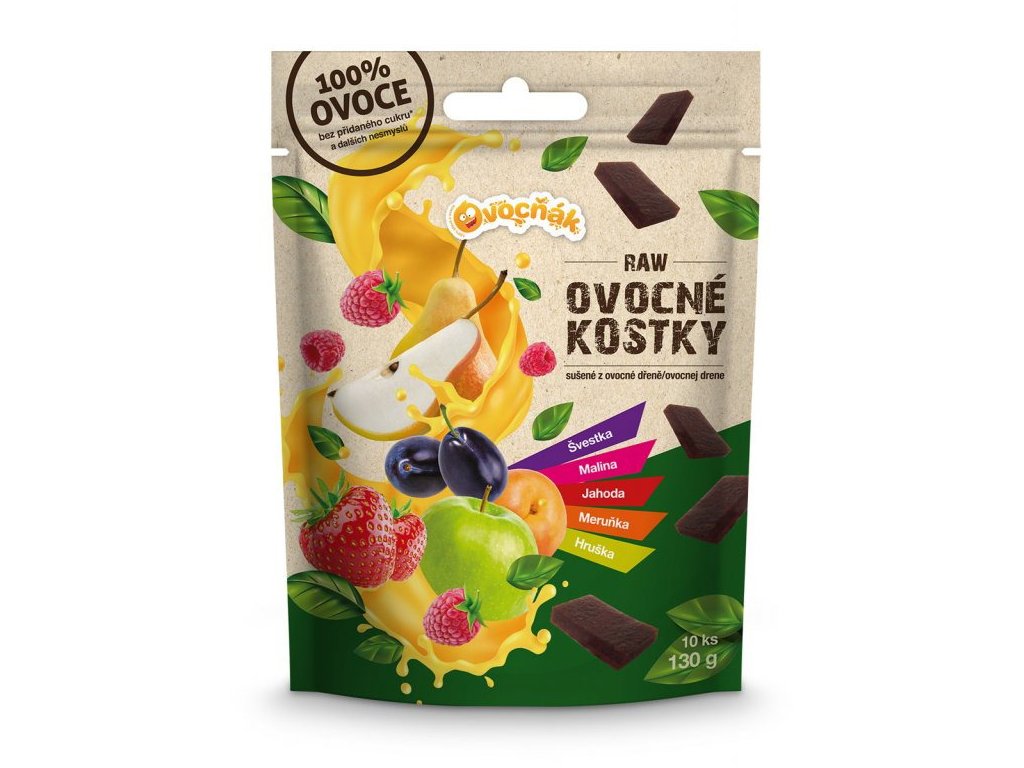 Ovocné kocky sú nová verzia ovocných plátkov v praktickom sáčku so zipsom, ktoré jednoducho hodíte do báglu alebo kabelky a môžete opätovne otvárať a zatvárať podľa potreby. Pretože vieme, že plátky jednoducho miznú ako para nad hrncom, pripravili sme túto poriadnu zásobu. :)Na 13g plátok použijeme minimálne 85 g čerstvého ovocia. Rovnako ako naše plátky sú bez pridaného cukru, konzervantov, farbív a aróm, a práve preto sú neuveriteľne dobré.