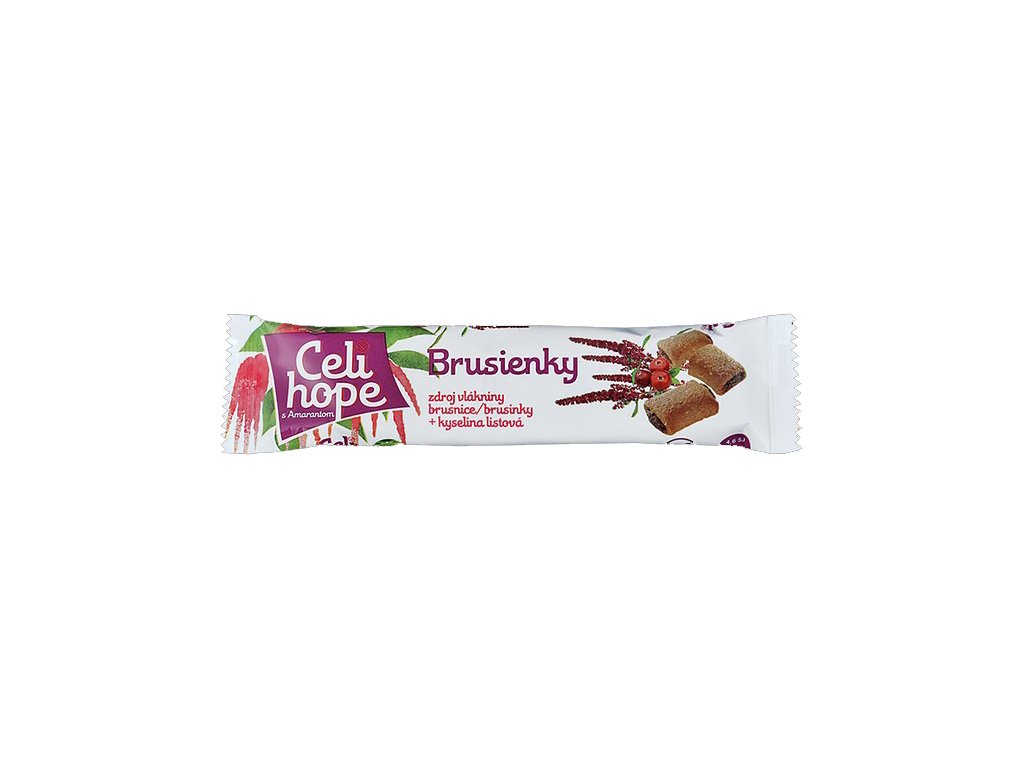 kukuričná múka, sušené datle, rastlinný tuk (repkový olej, kokosový tuk, úplne hydrogenovaný repkový olej, emulgátor /mono- a diglyceridy mastných kyselín/, regulátor kyslosti /kyselina citrónová/, aróma, vitamín A), fruktóza, fruktózový sirup, sušené brusnice 5,6 % (brusnice, cukor, slnečnicový olej), kakaová poleva ([rastlinné tuky: úplne hydrogenovaný /kokosový, repkový/, maslovníkový], sušená srvátka, odtučnené kakao 14 %, fruktóza, laktóza, maltodextrín, emulgátor /lecitíny/, arómy), amarantová múka 1,7 %, semená sezamu, odtučnené kakao, regulátor kyslosti (kyselina jablčná), arómy, sušený vaječný žĺtok, zahusťovadlo (guarová guma), kyselina listová.