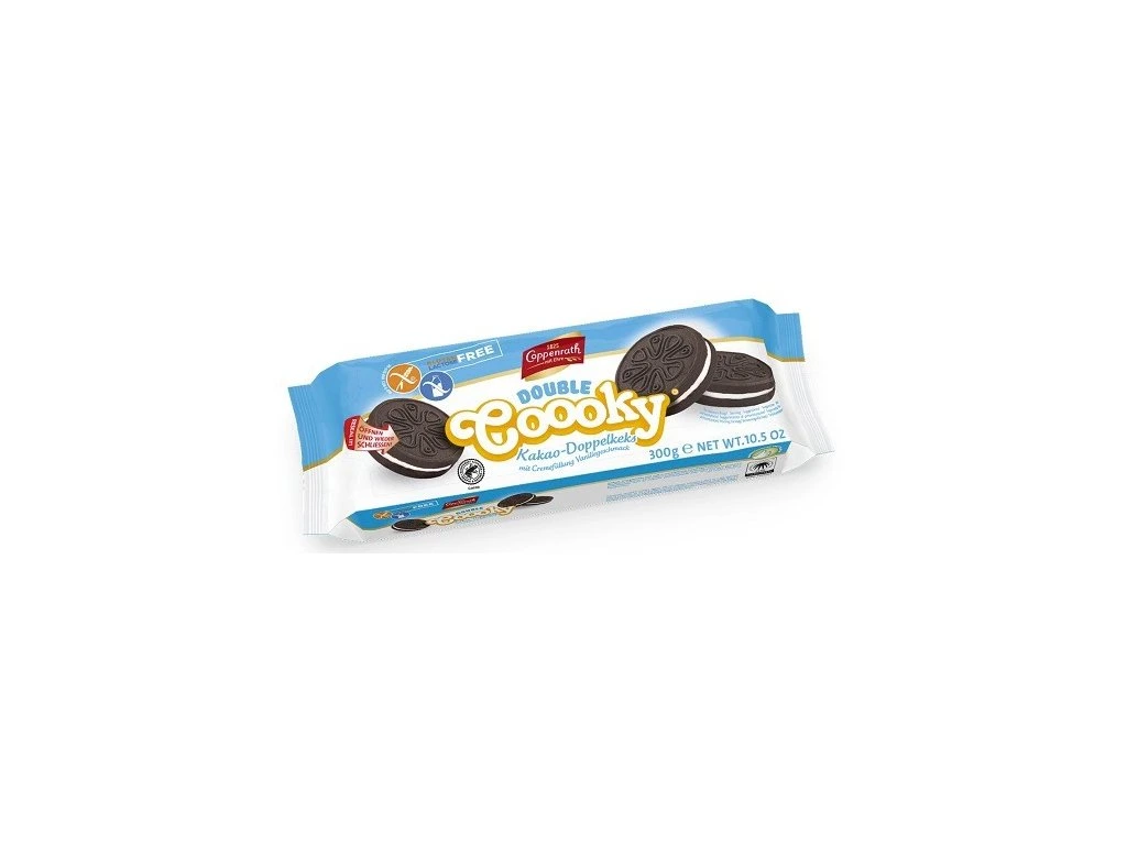 Zloženie:Vanilkový krém (35 %): [cukor, palmový olej, prírodná vanilková aróma, emulgátor (sójový lecitín-E322)], kukuričná múka, zemiakový škrob, cukor, palmový olej, kakaový prášok (s nízkym obsahom tuku) (11 %), dextróza, tapiokový škrob, prírodný bourbon vanilková aróma, soľ, emulgátor (sójový lecitín, E322), prípravku na kysnutie (amónny hydrogénuhličitan-E503ii, hydrogénuhličitan sodný-E500ii), prírodná vanilková aróma. Obsahuje sóju.