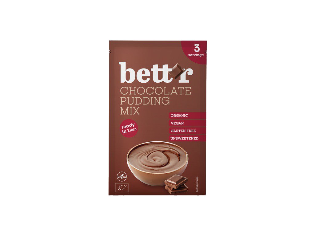 Zmes na čokoládový puding Bett'r teraz v praktickom 30 g vrecku. 3 porcie, pripravené za minútu.Recept na čokoládový puding Bett'r pozostáva len z niekoľkých starostlivo vybraných ingrediencií, z ktorých hlavnou je peruánske kakao. Zmes na čokoládový puding je bezlepková, bez mliečnych výrobkov a bez umelých aróm. Vďaka svojmu úplne prírodnému zloženiu je ideálna pre malé deti.