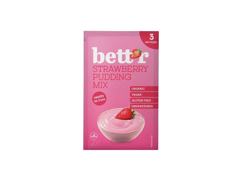 Zmes na jahodový puding Bett'r teraz v praktickom 30g vrecku. 3 porcie, pripravené za minútuRecept pozostáva len z niekoľkých ingrediencií, je bezlepkový a bez umelých aróm. Jahodová chuť a aróma sú výsledkom pridaného jahodového prášku, vďaka čomu je produkt úplne prírodný a ideálny pre milovníkov dezertov všetkých vekových kategórií. Zmes je nesladená, čo vám dáva právo vybrať si vlastné sladidlo