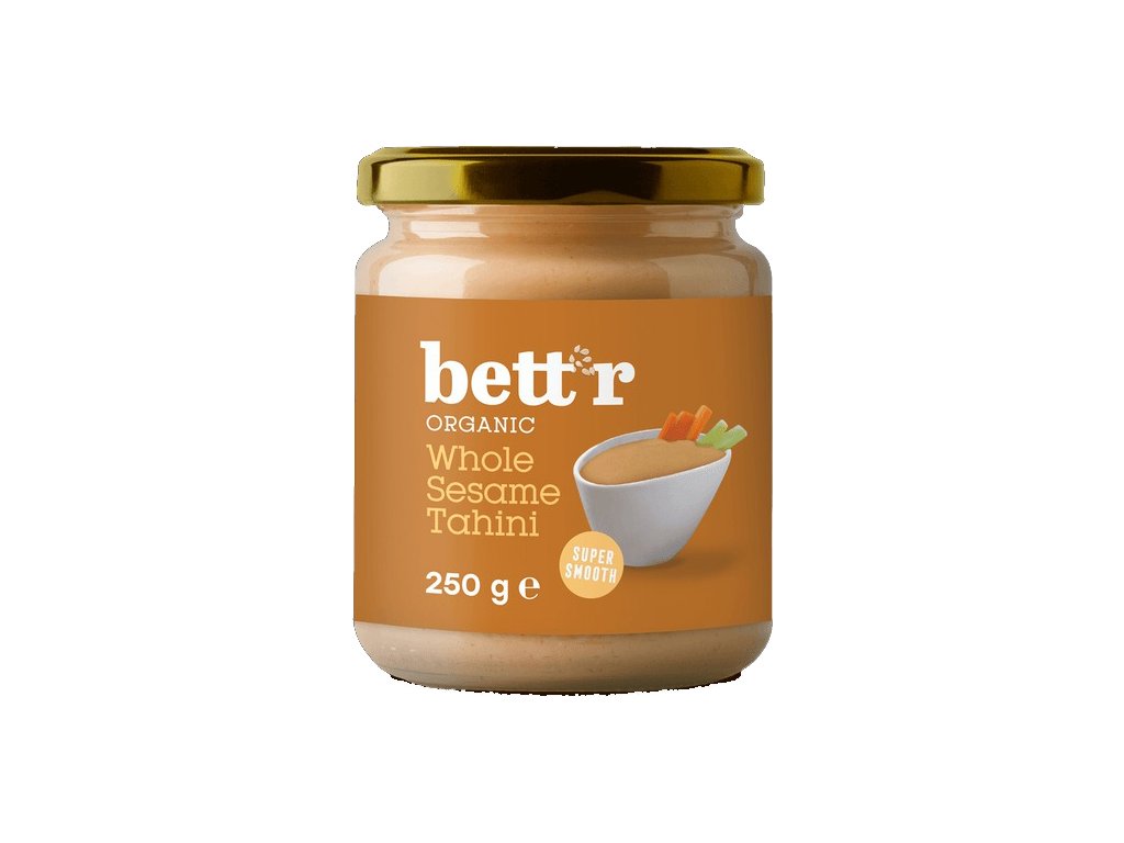 Bett'r Organic Tahini, vyrobené výhradne z dokonale pražených sezamových semienok, sa môže pochváliť super hladkou, krémovou textúrou bez pridaného tuku. Je to perfektný doplnok na vylepšenie vašich šalátov, dezertov a smoothies.Tahini je neuveriteľne všestranné a dobre sa kombinuje so slanými aj sladkými ingredienciami. K slaným jedlám ho skúste skombinovať s citrónom, mätou alebo cícerom. Pre sladký nádych je výborný s medom, kakaom alebo datľami.