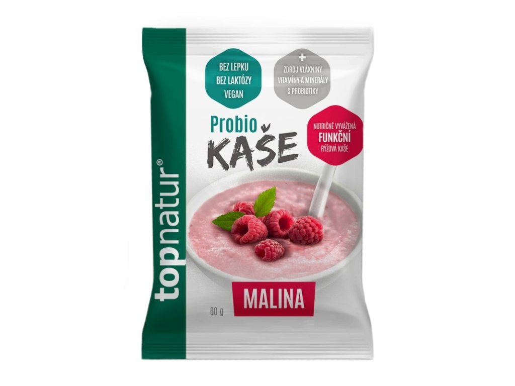 Bezlepková Probio kaša Malina je nutrične vyvážená funkčná ryžová kaša s malinovou príchuťou.Probio kaše sú jedinečné kaše obohatené o probiotické kmene. Obsahujú prebiotickú vlákninu inulín, ktorá je veľmi dôležitá ako živný substrát pre rast probiotických kultúr obsiahnutých v kaši. Probio kaše obsahujú aj vitamíny a minerály, najmä A, B1, B6, B12, C, D3, vápnik, horčík, fosfor, selén, železo, niacín. Kaša neobsahuje lepok, laktózu ani kazeín a je tak vhodná pre ľudí s výživovým obmedzením a pre záujemcov o racionálne stravovanie. Probio kaše sú vhodné pre rekonvalescentov a športovcov rovnako ako pre osoby s intoleranciou k laktóze, s bezlepkovou diétou, pre vegánov, seniorov a môžu ich konzumovať aj deti.