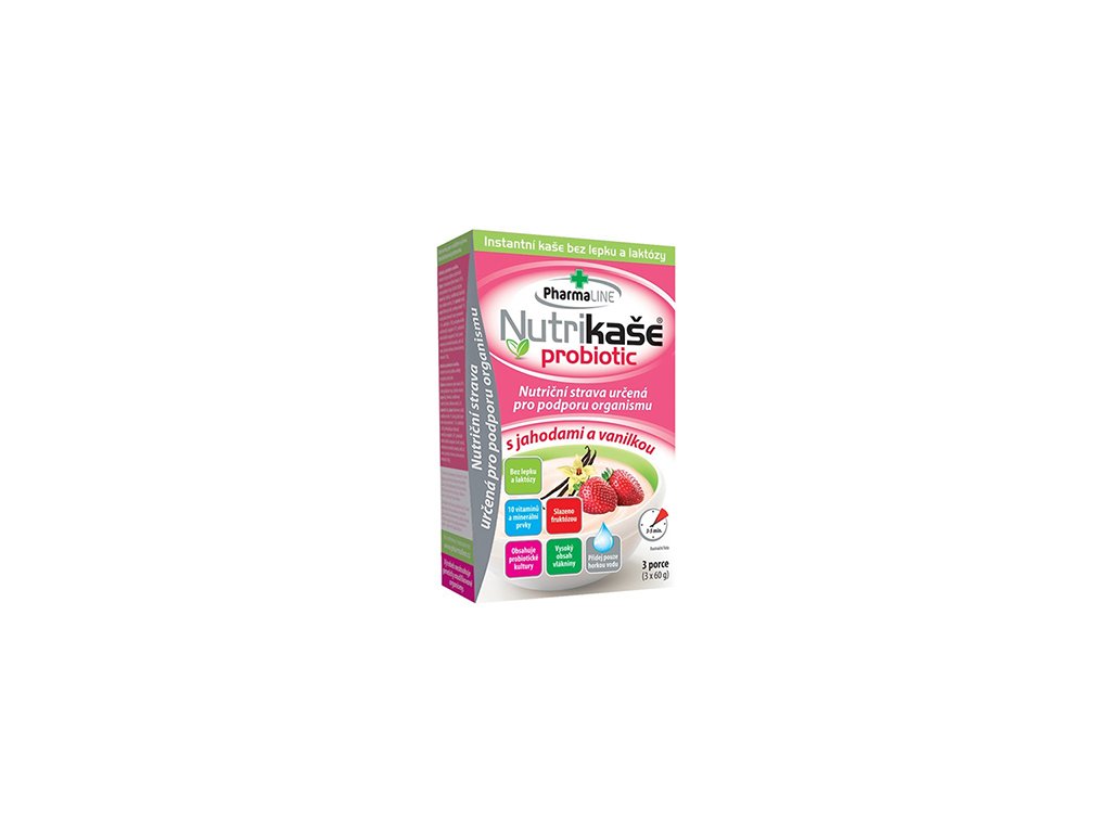 Nutrikaša probiotic s jahodami je chutná instatná ryžová kaša bez lepku a laktózy, s kúskami mrazom sušených jahôd, navyše obohatená o arómu vanilky. Vďaka svojmu zloženiu a prepracovanej receptúre je vhodná ako pre jedincov s výživových obmedzením, tak pre záujemcov o racionálne stravovanie, rekonvalescentov alebo ako ekonomická alternatíva na raňajky či desiatu.Kaša je vhodnou súčasťou doplnkovej stravy práve pri výživovom obmedzení, či už ide o neznášanlivosť lepku alebo intoleranciu laktózy, ďalej je skvelým doplnkom vlákniny, vitamínov, minerálov a probiotických kultúr do organizmu.