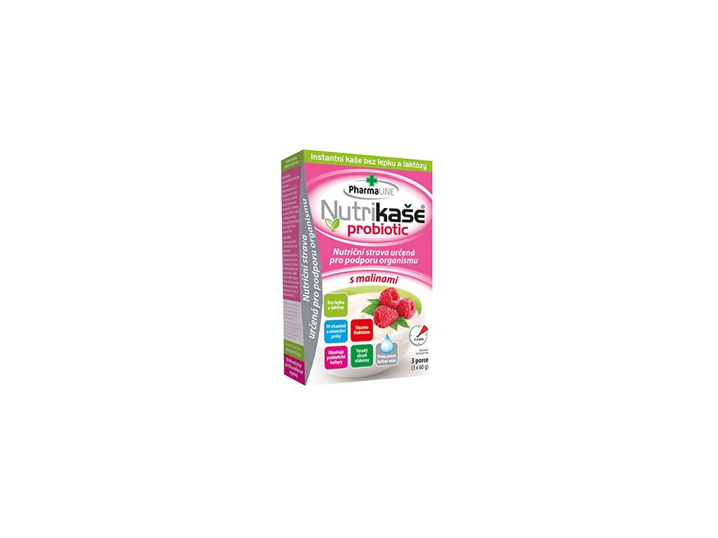 Nutrikaša probiotic s malinami je chutná instatná ryžová kaša bez lepku a laktózy, s kúskami mrazom sušených malín. Vďaka svojmu zloženiu a prepracovanej receptúre je vhodná ako pre jedincov s výživových obmedzením, tak pre záujemcov o racionálne stravovanie, rekonvalescentov alebo ako ekonomická alternatíva na raňajky či desiatu.Kaša je vhodnou súčasťou doplnkovej stravy práve pri výživovom obmedzení, či už ide o neznášanlivosť lepku alebo intoleranciu laktózy, ďalej je skvelým doplnkom vlákniny, vitamínov, minerálov a probiotických kultúr do organizmu.