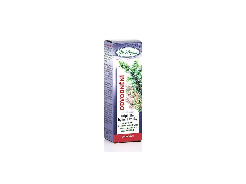 Originálne bylinné kvapky Dr. Popova Odvodnenie obsahuje 7 bylín známych pre svoje účinky na funkciu močových ciest, vylučovanie vody z organizmu a zmiernenie pocitu ťažkých nôh.
