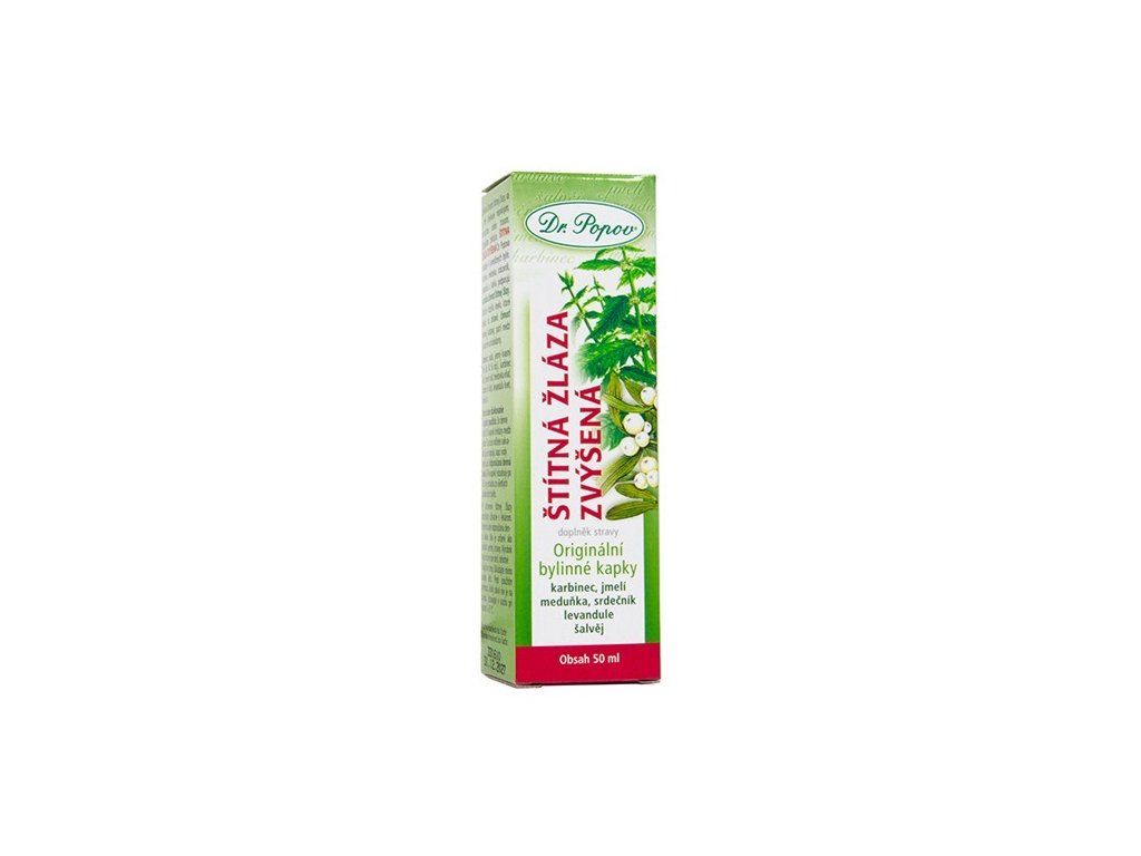 Kedy sa vám budú bylinné kvapky Štítna žľaza zvýšená hodiť:Zvýšená činnosť štítnej žľazy sa môže v tele prejavovať nepokojom, nervozitou alebo trasom. Originálna bylinná tinktúra Dr. Popova Štítna žľaza zvýšená obsahuje 6 osvedčených bylín. Karbinec, srdcovník, levanduľa a šalvia podporujú správnu činnosť štítnej žľazy. Medovka nastoľuje hormonálnu rovnováhu a navodzuje pocit pokoja a relaxácie. Srdcovník pôsobí blahodárne na nervovú sústavu a srdce. Zloženie dopĺňa imelo, ktoré pôsobí na zdravú činnosť cievnej sústavy, patrí medzi významné antioxidanty.