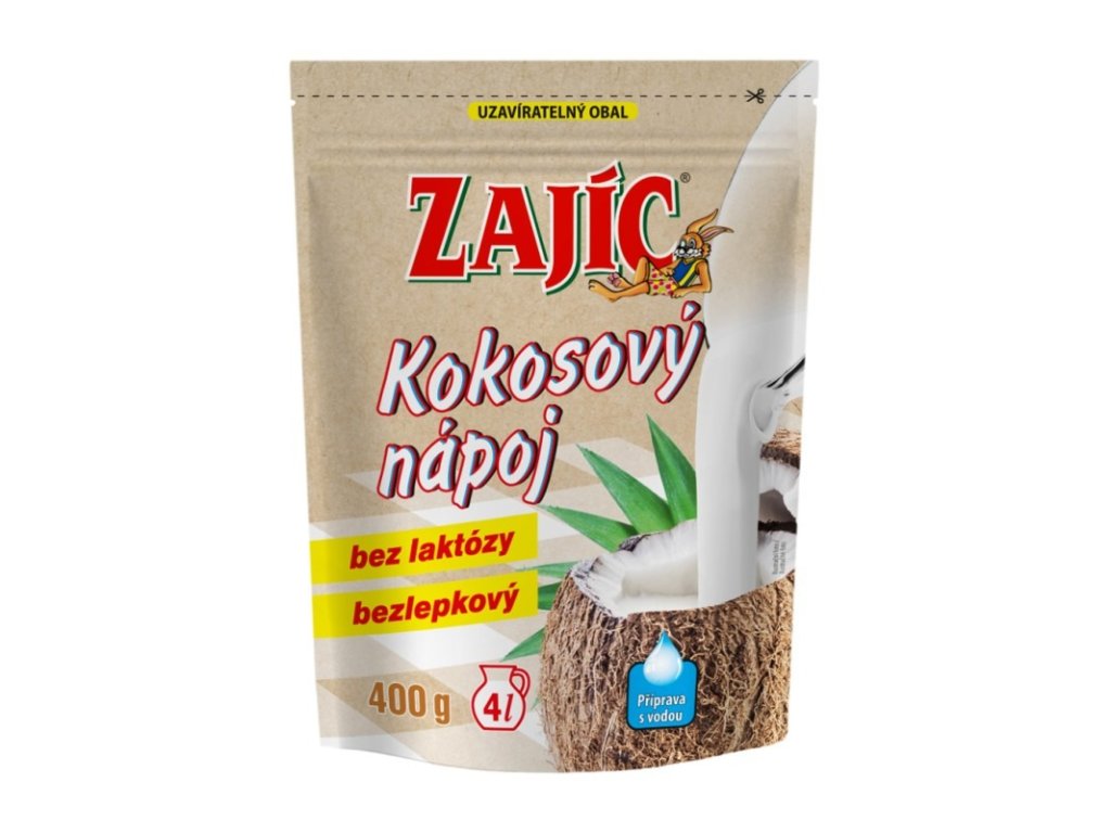 Kokosový nápoj Zajac je bezlaktózovou a bezlepkovou alternatívou kravského mlieka bez obsahu geneticky modifikovaných organizmov. Je vhodný pre alergikov na laktózu kravského mlieka, pre osoby s bezlepkovou diétou a záujemcov o racionálne stravovanie. Sušený kokosový nápoj je ľahko rozpustný, pri použití sa nezráža.Zloženie: