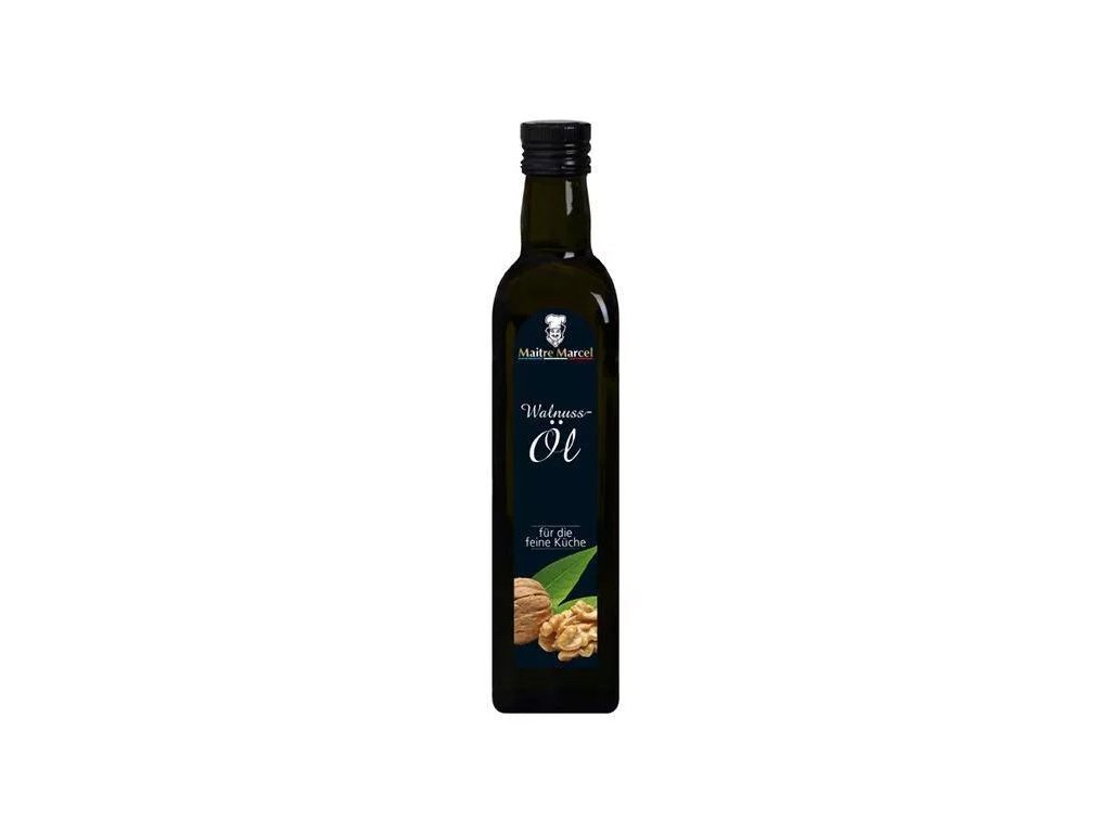 Ušľachtilý a jemný: Olej z vlašských orechov Maitre Marcel vyrobený z pražených jadier vlašských orechov. Olej z vlašských orechov je už dlho cenený ako gurmánsky olej, najmä vo francúzskej kuchyni. Tento jemný olej na varenie, aromatický a orieškový, dodáva mnohým jedlám osobitnú sofistikovanosť. Skutočný vrchol pre fajnšmekrov a hobby kuchárov.Čerstvý šalát rafinovaný olejom z vlašských orechov je skutočnou pochúťkou. Ušľachtilý olej zaujme aj v špargľových a rybích pokrmoch, ako aj polievkach alebo orieškovou vôňou v sladkých maškrtách. Olej z vlašských orechov je jedným z najkvalitnejších olejov. Vyznačuje sa vysokým podielom polynenasýtených mastných kyselín.