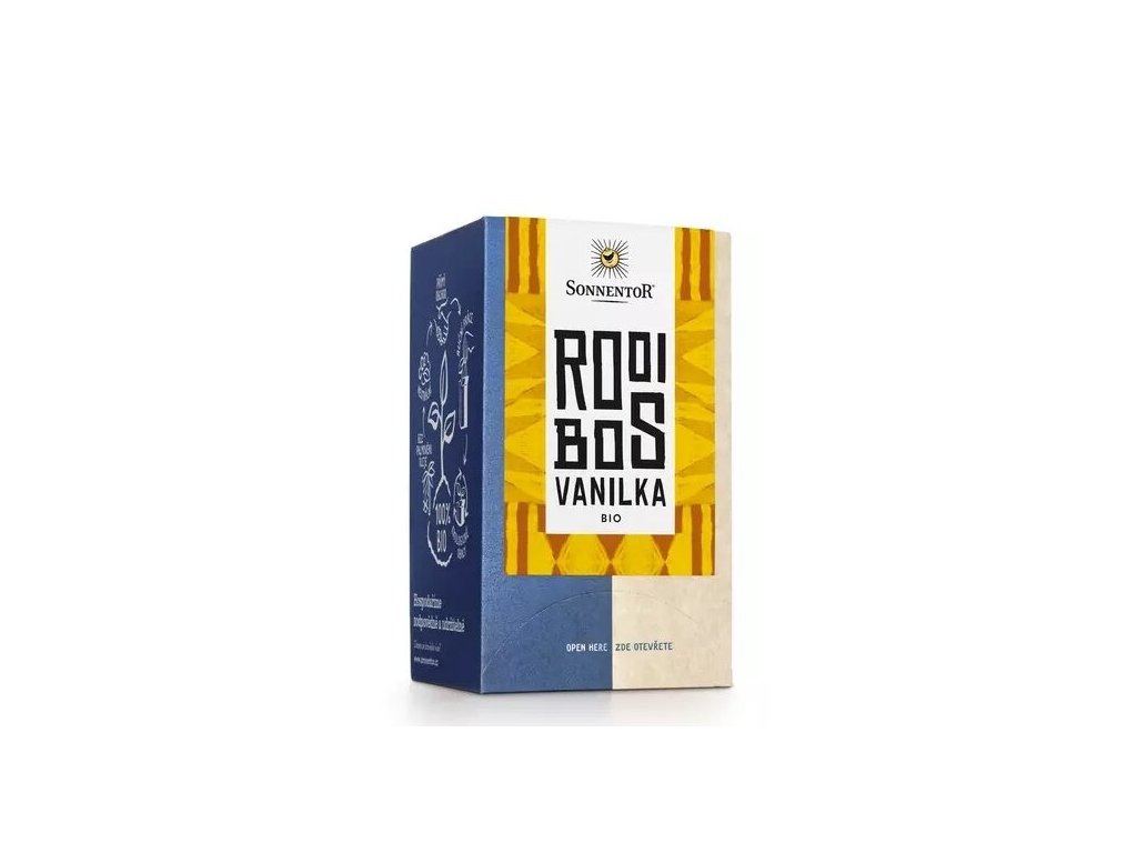 Najjemnejšia zmes rooibosu, veľmi aromatická, zavŕšená obľúbenou sladkou vanilkovou arómou. Vyskúšajte ľúbezné spojenie sladkastého rooibosu a zmyselnej vanilky. Túto skvelú dvojicu oceníte predovšetkým k dezertom alebo koreneným pokrmom. Zlatohnedý nápoj môžete tiež zjemniť medom alebo mliekom. Neobsahuje kofeín. Pre dlhšie uchovanie aromatických látok balené do papierového prebalu.18 nálevových vreciek á 1,2 g