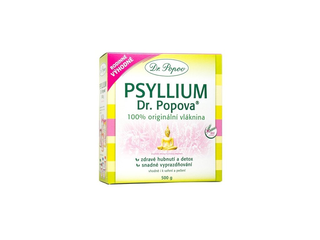 Psyllium Dr. Popova zmäkčuje stolicu a zároveň zväčšuje jej objem. Tým napomáha správnemu a ľahkému vyprázdňovaniu, čo je dôležité pri tuhej a nepravidelnej stolici, diskomforte v oblasti konečníka, v tehotenstve, apod.