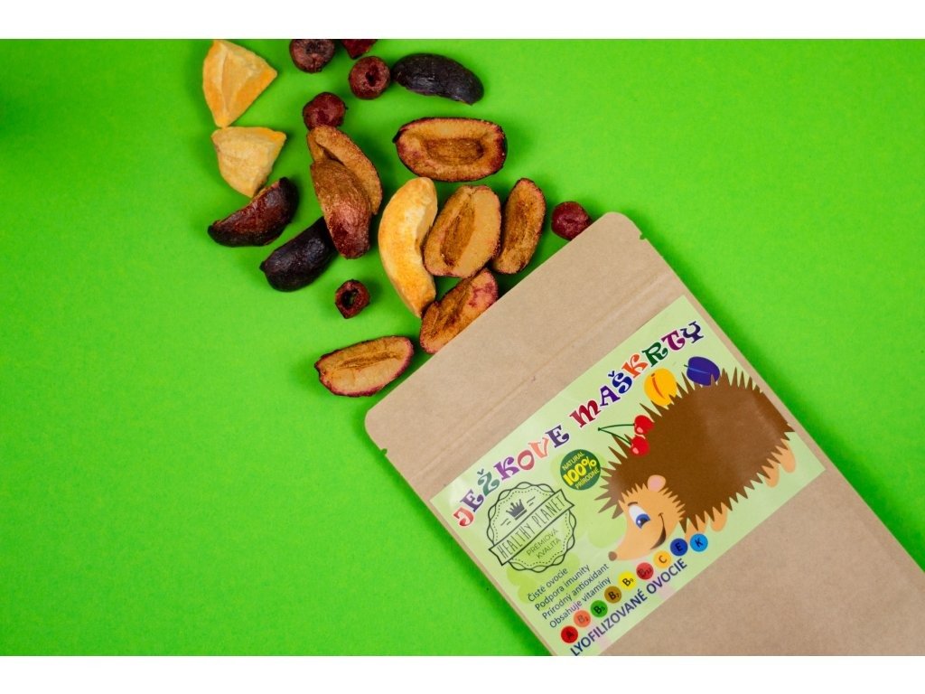 Zloženie: 100% slivky, marhule, višne, dehydrované procesom lyofilizácie (proces sušenia mrazom).