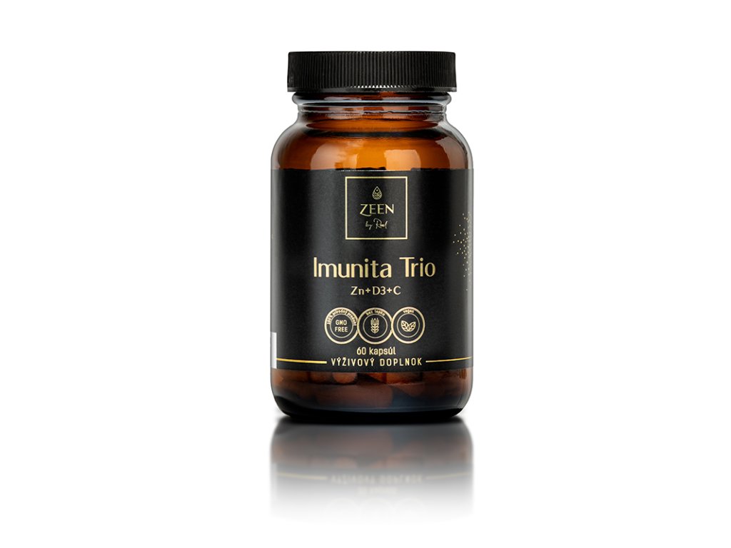 Imunita trio obsahuje prírodný vitamín C získaný z Aceroly, vitamín D3 a Zinok. Acerola pôsobí ako ochrana buniek pred oxidačným stresom, podporuje tvorbu kolagénu a prispieva k správnej funkcii krvných ciev, podporuje nervový a imunitný systém, počas intentívnej telesnej námahy a po nej, zabraňuje únave a vyčerpanieu.Zloženie: