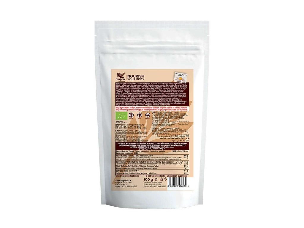 Dragon Superfoods Guarana prášok sa vyrába zo semien rastliny guarana –amazonský vždyzelený ker, ktorý dáva červené bobule. Po dozretí sa drobné plody rozdelia