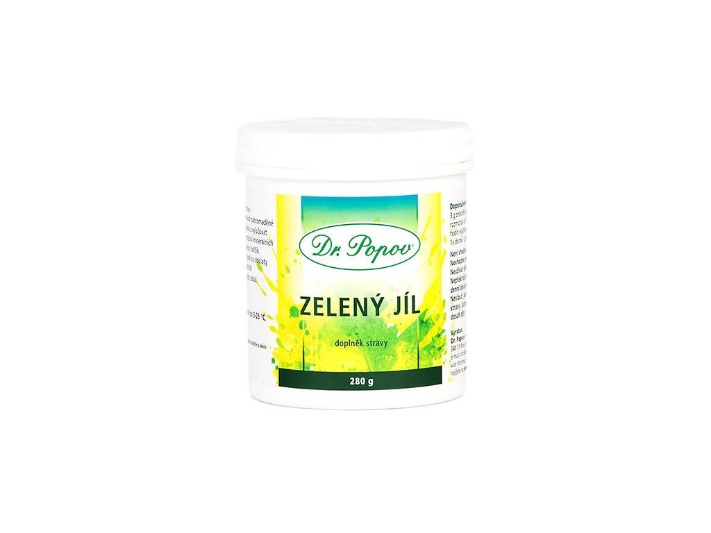 Zelený íl Dr. Popova dodávame v prášku, v praktickom plastovom obale. Je bez chuti a zápachu. Neobsahuje žiadne chemické a konzervačné látky, je 100% prírodný produkt. Je sušený na slnku a funguje iba vo vlhkom stave.